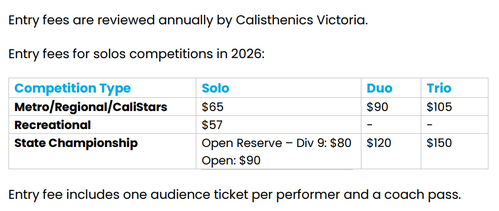 Registration Opens: Monday 10th November 2025. All performers and coaches must be registered with Calisthenics Victoria (CaliVic) for the 2026 season as only current, registered members are eligible to enter competitions